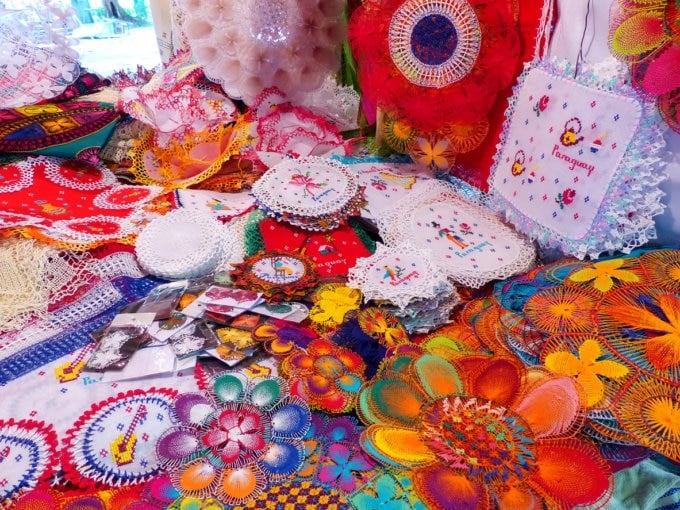 Muchos diseños están inspirados en la naturaleza, como el sol y las flores, y vienen en colores vibrantes de América del Sur, así como en tonos suaves y delicados. Dado que cada pieza está hecha a mano, las piezas grandes pueden ser costosas, pero las más pequeñas son asequibles y son recuerdos perfectos. El lindo bordado hace de Ñandutí un maravilloso regalo de Paraguay. Si visitas Paraguay, ¡no dejes de echarle un vistazo!