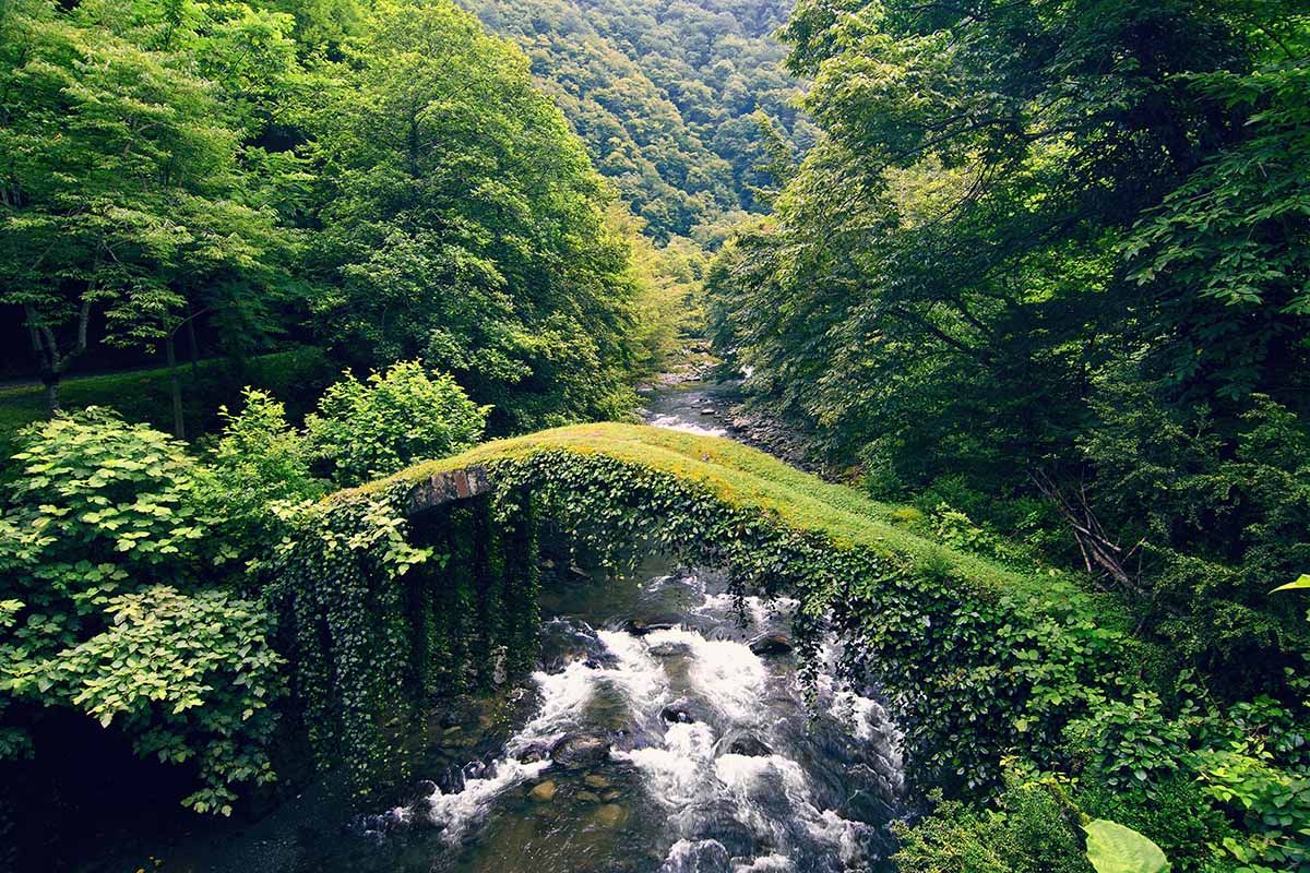 Posiblemente uno de los sitios más conocidos de Georgia, que adorna muchos folletos turísticos, el puente Makhuntseti es un arco de piedra que se extiende 20 metros sobre el río Ajaristskali en el pueblo de Makhuntseti. Pasee para disfrutar de vistas espectaculares de las montañas cubiertas de árboles del Cáucaso Menor. Durante el otoño los colores de las hojas son impresionantes.