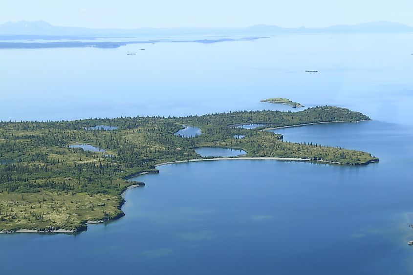 El lago Yellowstone en el Parque Nacional Yellowstone de Wyoming no es solo el lago a gran altura más grande de Estados Unidos; también está entre los más fríos. Ubicado a más de 7,700 pies sobre el nivel del mar en una caldera volcánica activa, el lago permanece helado incluso en verano, con temperaturas superficiales típicamente entre 4 y 50 °F y una capa de hielo que puede permanecer desde diciembre hasta finales de mayo. Este duro clima da forma a un paisaje agreste y espectacular de agua azotada por el viento, picos nevados y humeantes géiseres costeros donde las aguas termales se encuentran con olas casi heladas.