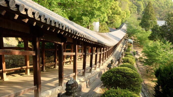 Un Tesoro Nacional de Japón, el Santuario Kibitsu es el único de su tipo en el país. El estilo arquitectónico de la sala principal, conocido como kibitsu-zukuri, lleva el nombre del santuario y es el método de diseño de santuarios sintoístas más antiguo conocido. La otra característica única del santuario es el largo corredor de madera que recorre 360 metros desde la sala principal hasta que se encuentra con la curva del río hacia el sur. Muchos creen que el famoso cuento de hadas japonés "Momotaro" (El niño melocotón) tiene sus raíces en Okayama, y los amuletos en forma de melocotón son un recuerdo popular del santuario.