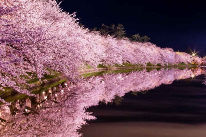 Otro lugar famoso por sus vistas de los cerezos en flor es el Castillo de Hirosaki, cuyos terrenos están adornados con hermosos árboles de sakura. Uno de los aspectos más destacados es el foso que rodea el castillo, que se convierte en un espectáculo impresionante cuando los pétalos empiezan a caer. Si bien Hirosaki es un largo recorrido, ubicado en Aomori, la prefectura más al norte de Japón, el viaje definitivamente vale la pena por el increíble paisaje. Debido a que está más al norte, la temporada de floración de los cerezos aquí comienza un poco más tarde, normalmente desde finales de abril hasta principios de mayo.