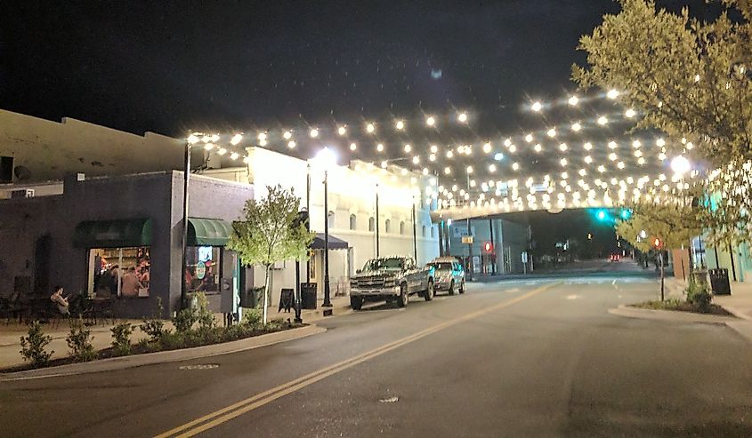Vista del centro de Hartsville por la noche en Carolina del Sur.