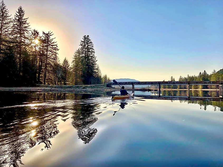Un kayakista remando por Blind Slough en Petersburgo, Alaska.