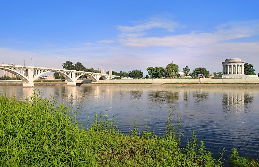 Puente conmemorativo de Lincoln sobre el río Wabash cerca del Parque Histórico Nacional George Rogers Clark, Vincennes, Indiana.