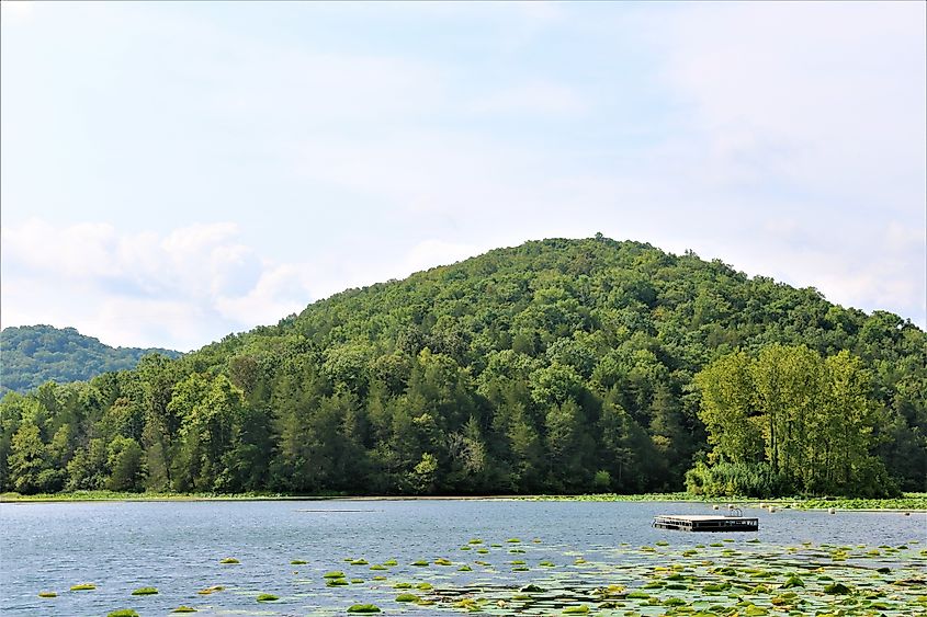 Vista del lago Weatherwood en Eureka Springs, Arkansas.