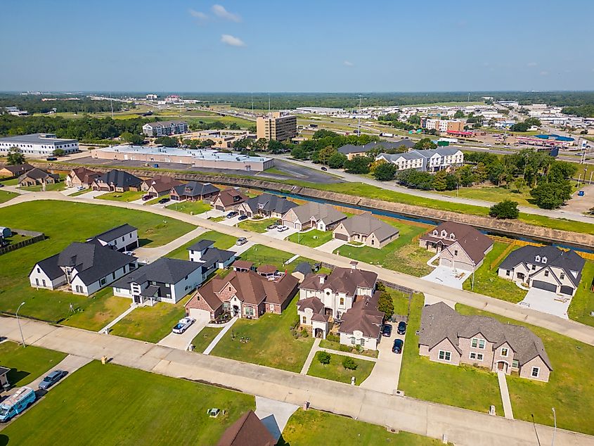 Foto aérea de viviendas residenciales en Beaumont, Texas.