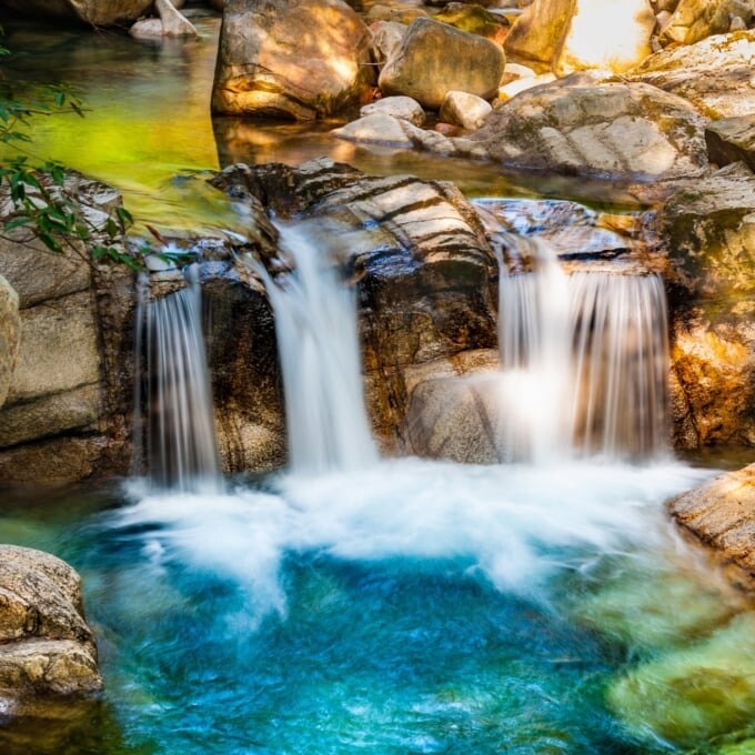 Por lo general, la cascada tiene un flujo de agua suave y la piscina debajo brilla en fascinantes tonos verde esmeralda y azul cobalto bajo la luz del sol. Sin embargo, después de fuertes lluvias o durante las liberaciones de agua de la planta hidroeléctrica aguas arriba, la cascada se transforma en una vista poderosa y dinámica.
