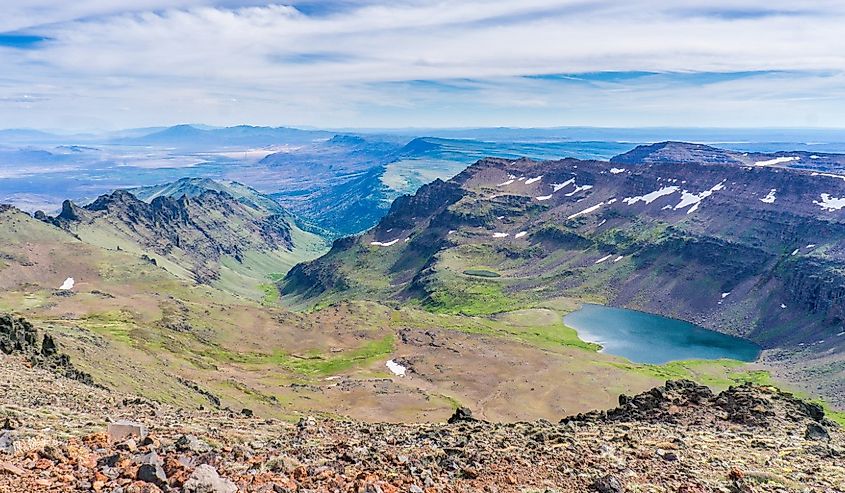 Lago Wildehorse desde la cima de la montaña Steens en Oregón.