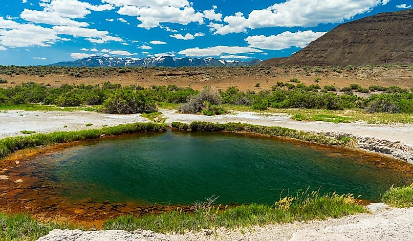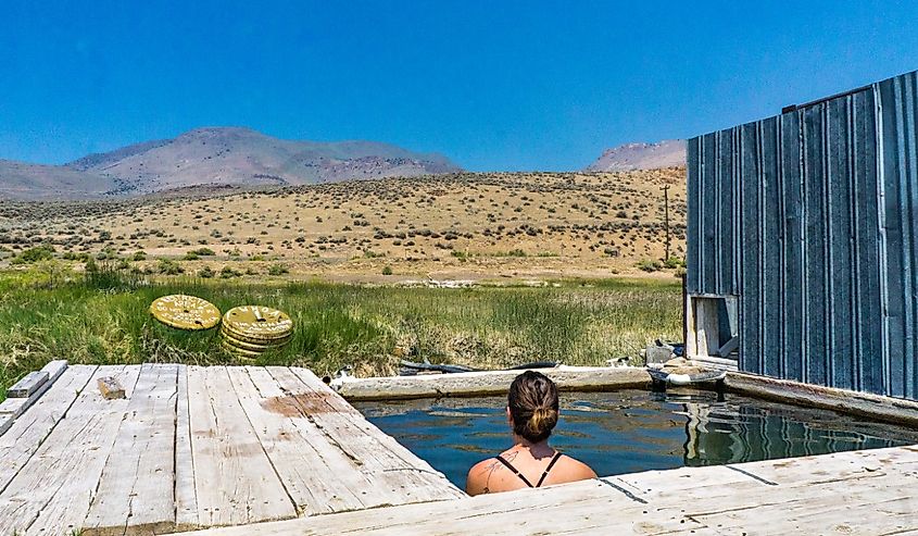 Sumérgete en las aguas termales del desierto de Alvord en Oregón, con vistas a la montaña Steens. Crédito de la imagen Pernelle Voyage a través de Shutterstock