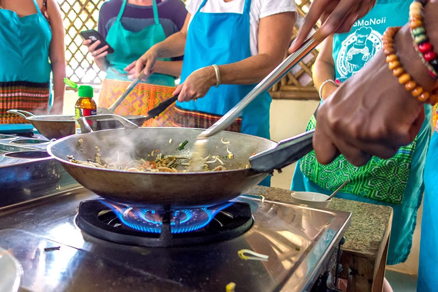 Migliora le tue abilità culinarie con questo emozionante corso di cucina tailandese. Visiterai un mercato locale in tuk tuk e cucinerai quattro piatti tradizionali tailandesi mentre imparerai gli autentici sapori tailandesi! Ma la parte migliore di questo tour imperdibile sarà divorare le tue gustose creazioni. I vegetariani e i mangiatori di celiaci in Thailandia stanno diventando sempre più comuni, quindi se hai delle restrizioni dietetiche, non preoccuparti, faglielo sapere in anticipo in modo che possano apportare le dovute modifiche. Per imparare a essere uno chef tailandese a casa senza spendere troppo, questo corso di cucina vale più che l'investimento.