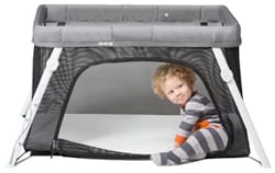 Il 4moms Breeze Playard vince a mani basse quando si tratta di facilità d'uso; tutto ciò di cui ha bisogno è una spinta per aprire e chiudere. Per comodità, questo è tra i migliori presepi da viaggio. Il playard a grandezza naturale è dotato anche di una culla rimovibile, che offre una fantastica area giochi di giorno e una comoda zona notte di notte. È robusto e durevole, ottimo per i viaggiatori attivi che trascorrono molto tempo in viaggio. Si compatta in una borsa facile da trasportare, completa di tracolla. Con un peso di quasi 25 libbre, potrebbe non essere il lettino da viaggio più leggero disponibile, ma è sicuramente uno dei più comodi da usare.
