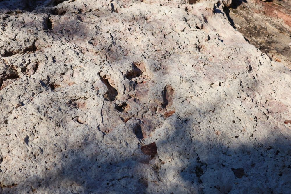 Impronta di dinosauro fossilizzata su un masso trovato nella natura selvaggia del Parco Nazionale di Zion