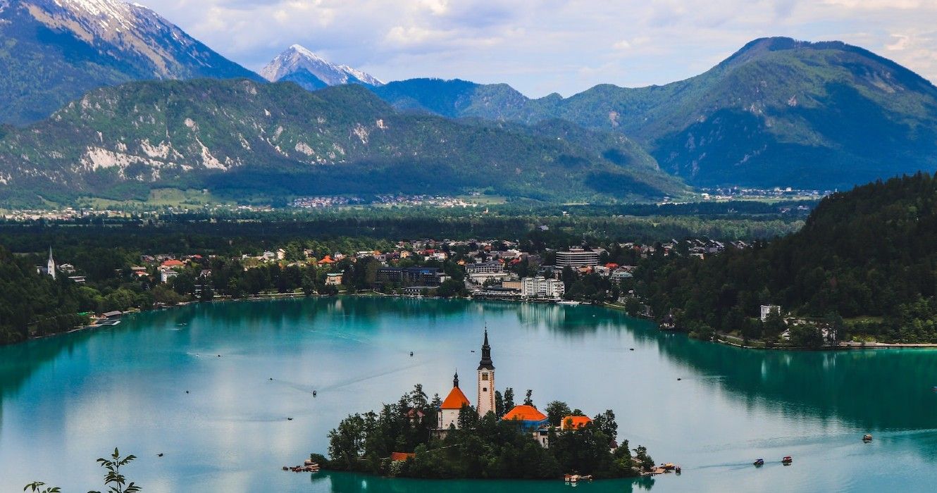 Una veduta del lago di Bled in Slovenia