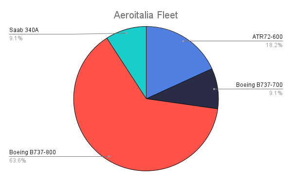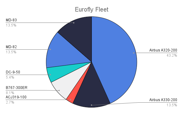 Secondo ch-aviation, la compagnia aerea gestiva una flotta di 35 aerei, come da grafico sottostante:
