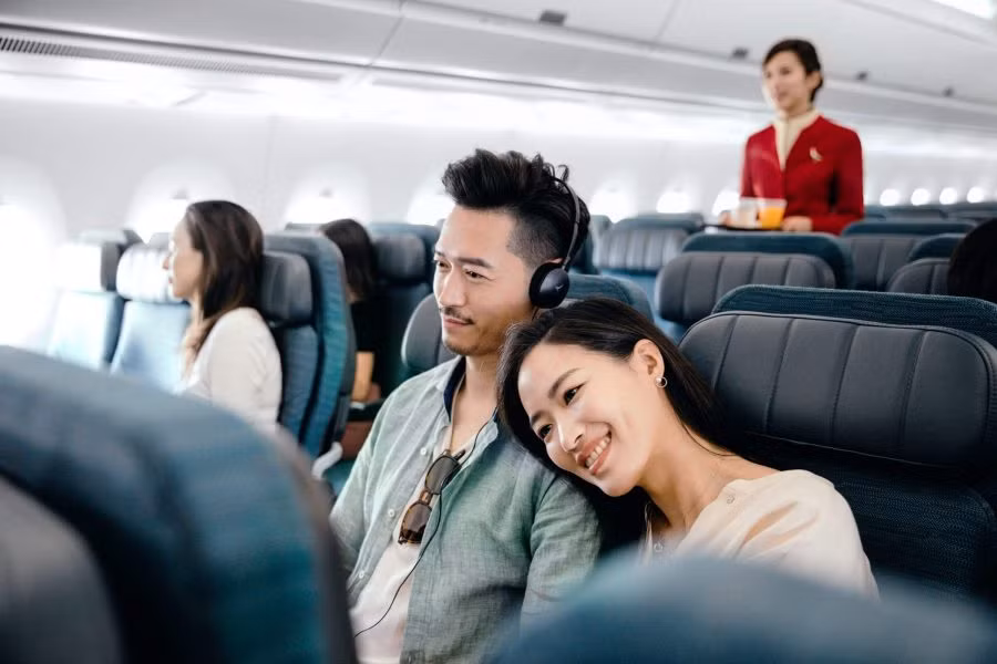i viaggiatori possono godersi quella che è stata considerata una delle migliori classi Economy al mondo (vincitrice Skytrax 2024 e 2025). La cabina economica è progettata per garantire maggiore comfort ed essere la migliore della categoria, con poggiatesta regolabili e imbottitura del sedile migliorata. Viene fornito il massimo supporto per la testa e il collo poiché potresti addormentarti mentre voli da e verso (HKG). Le opzioni di stivaggio migliorate fanno sì che i tuoi oggetti personali siano tenuti a portata di mano, con un ripiano dedicato su cui puoi posizionare il tuo cellulare o un piccolo tablet all'altezza degli occhi.