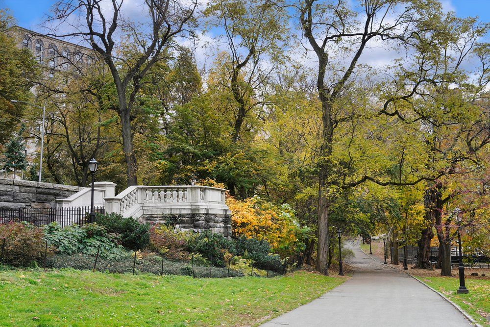 Percorso attraverso Riverside Park, un parco lungo e stretto nella parte superiore ovest di Manhattan lungo il fiume Hudson