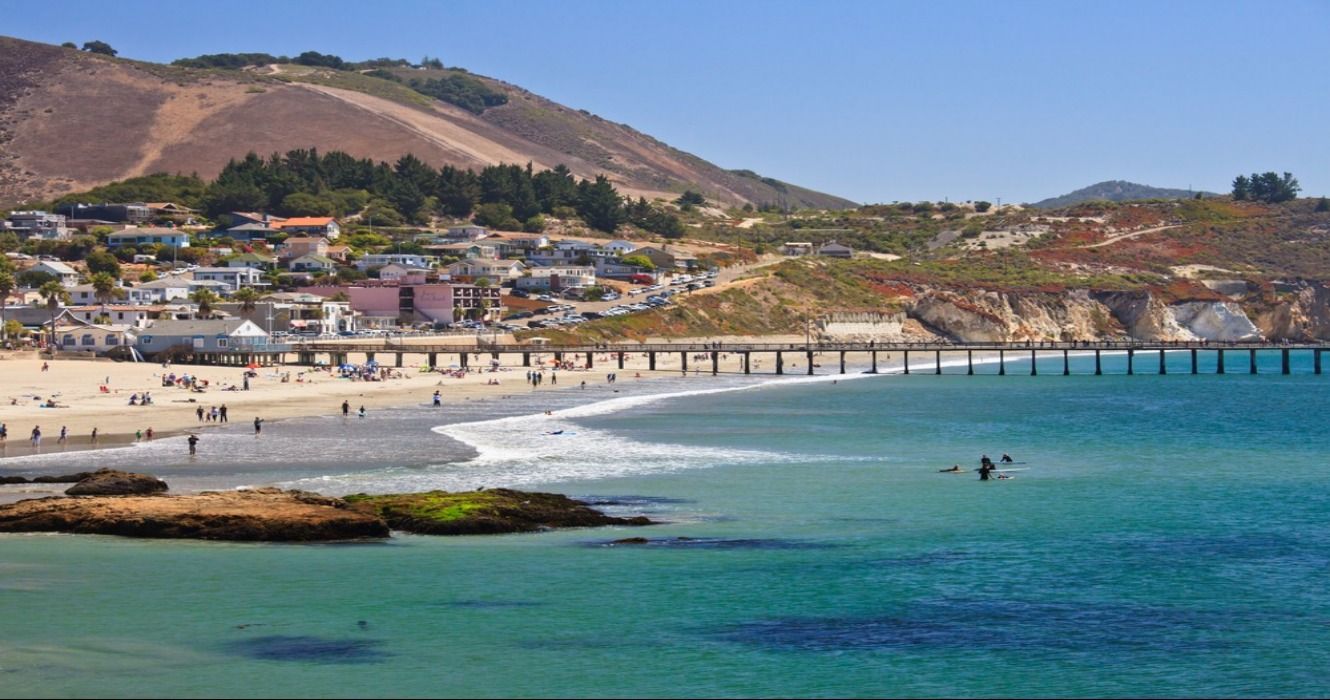 Avila Beach, una popolare destinazione per l'osservazione delle balene e una delle località balneari più famose della California centrale, a sud di San Luis Obispo, Stati Uniti
