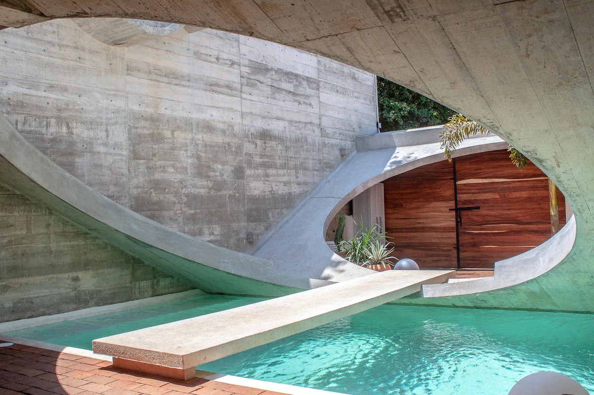 Cemento grezzo, fossati e palme ti danno il benvenuto nel folle progetto Zicatela di Ludwig Godefroy.