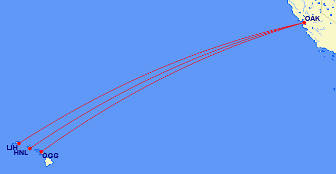 (SOF). Oakland mantiene tre servizi diretti per l'arcipelago hawaiano, tra cui: