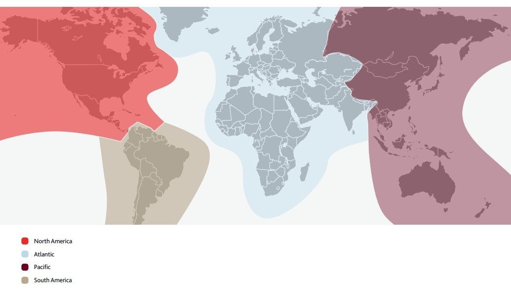 E per la zona del Pacifico: