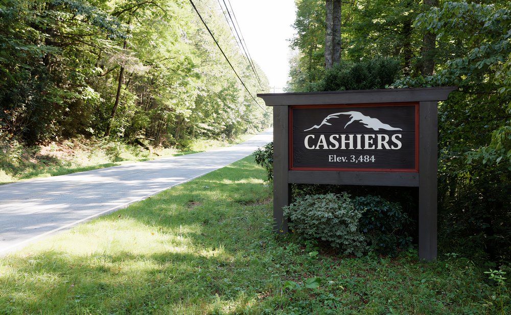 Un cartello ai confini della città a Cashiers, Carolina del Nord