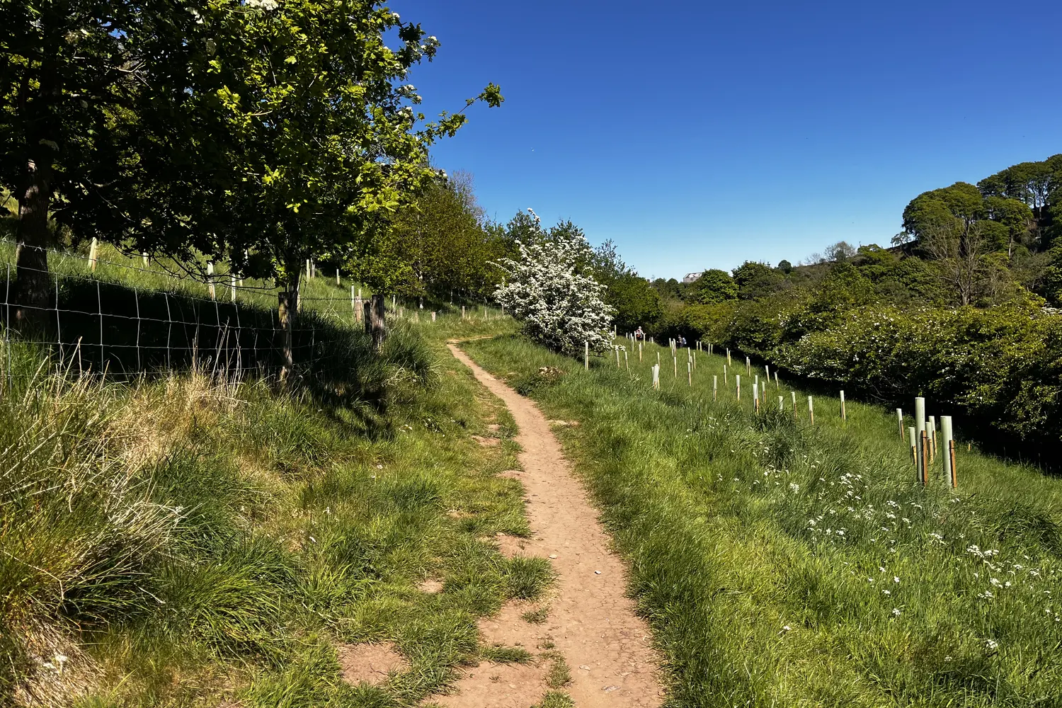 Da questo momento in poi, molti dei campi agricoli diventano più piccoli, portandoti a stretto contatto con pecore, cavalli e mucche. Non avvicinarti agli animali, soprattutto in primavera quando hanno i piccoli, a meno che tu non abbia voglia di essere inseguito! È meglio passeggiare tra mandrie di bovini e ovini ed evitare il contatto visivo prolungato. Inoltre, assicurati che tutti i cancelli siano chiusi nel modo in cui li hai trovati. Il sentiero prosegue attraverso incantevoli boschi ombreggiati, alcuni con panchine, e inizia a diventare più collinare. Alcuni campi potrebbero essere difficili da percorrere, quindi fidati sempre delle frecce direzionali o cerca altri camminatori in lontananza, che possono indicare l'uscita del sentiero.