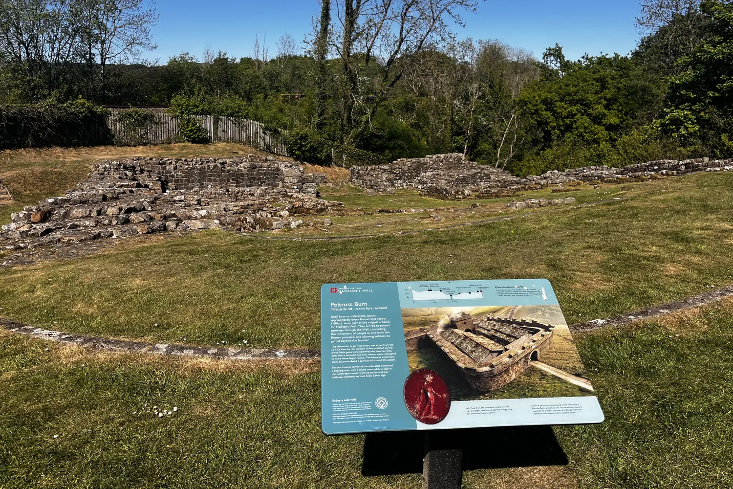 Quando entri a Gilsland, tieni presente che il servizio di telefonia cellulare diminuisce notevolmente, soprattutto in città. Quando raggiungi il cancello che conduce alla strada principale, potresti vedere dei segnali che reindirizzano gli escursionisti attraverso il paese a causa della manutenzione del sentiero. Si tratta di segnaletica obsoleta che andrebbe rimossa. Il sentiero in realtà prosegue attraverso la strada, oltre la scuola elementare, attraverso un campo agricolo e sui binari del treno. Poco dopo ti imbatterai in quello straordinariamente conservatoMilecastle 48 (Poltross Burn), che delinea chiaramente le fondazioni e gli ambienti interni della struttura.