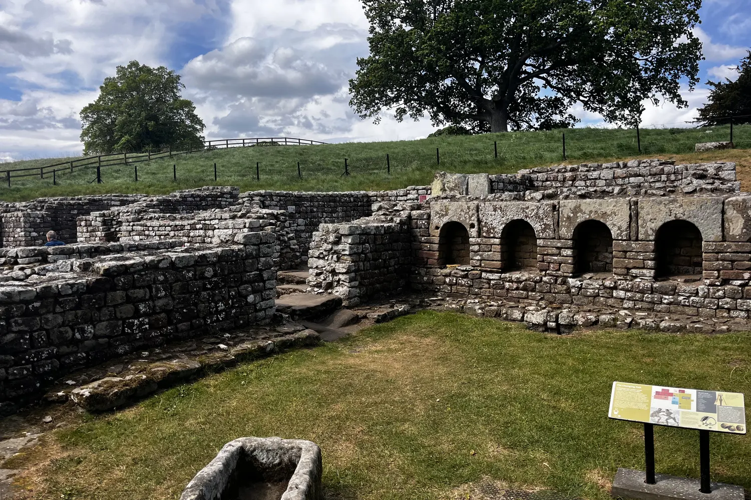Se camminare per l'intera lunghezza del Vallo di Adriano non è essenziale per te, prendi in considerazione l'idea di prendere i mezzi pubblici o un taxiCittà romana di Corbridgee trascorrere la giornata esplorando le sue imponenti rovine romane alte due metri (6,5 piedi). Similmente a Vindolanda, Corbridge è ben scavata e ospita un grande museo con reperti storici, tra cui ilIl tesoro di Corbridge—una raccolta di armature, armi e oggetti personali sepolti da un soldato romano. A differenza delle città di guarnigione come Vindolanda o Housesteads, Corbridge era un grande insediamento civile, che offriva uno sguardo unico sulla vita quotidiana lungo la frontiera romana.