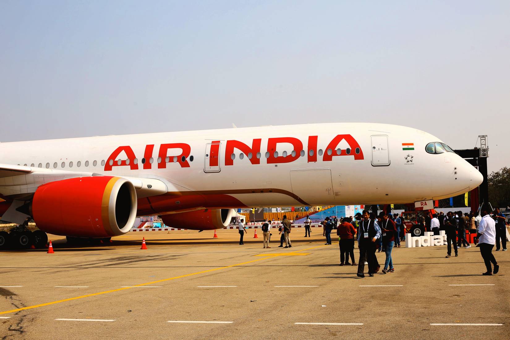 Il primo aereo A350-900 di AirIndia alimentato dal motore Rolls-Royce Trent xwb esposto a Wings IndiaCredito: Shutterstock