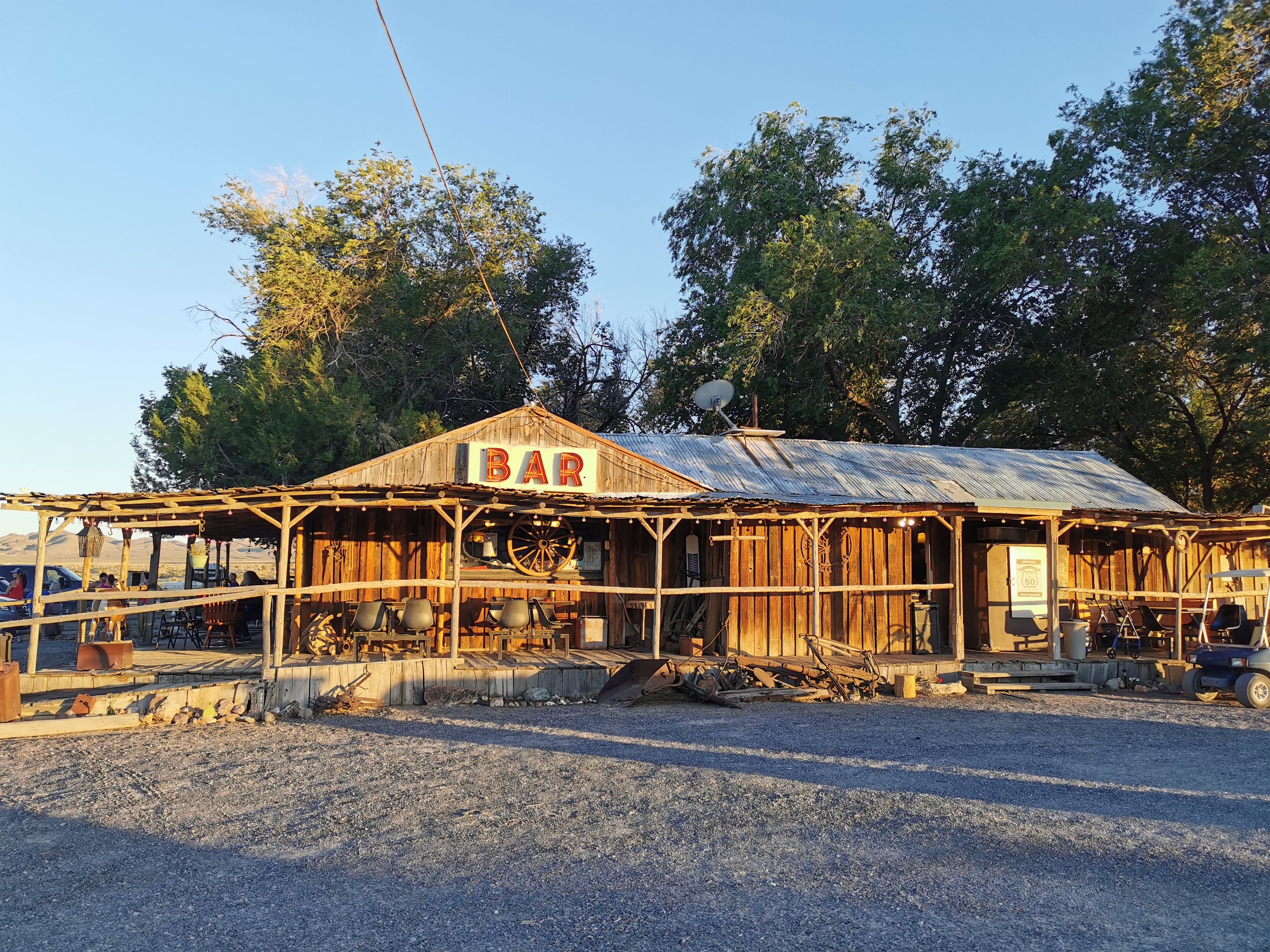 L'interno del bar e del ristorante è riccamente decorato con denaro proveniente da tutto il mondo e molto altro ancora. È una stazione polverosa, ma che si adatta davvero all'atmosfera della strada più solitaria d'America.