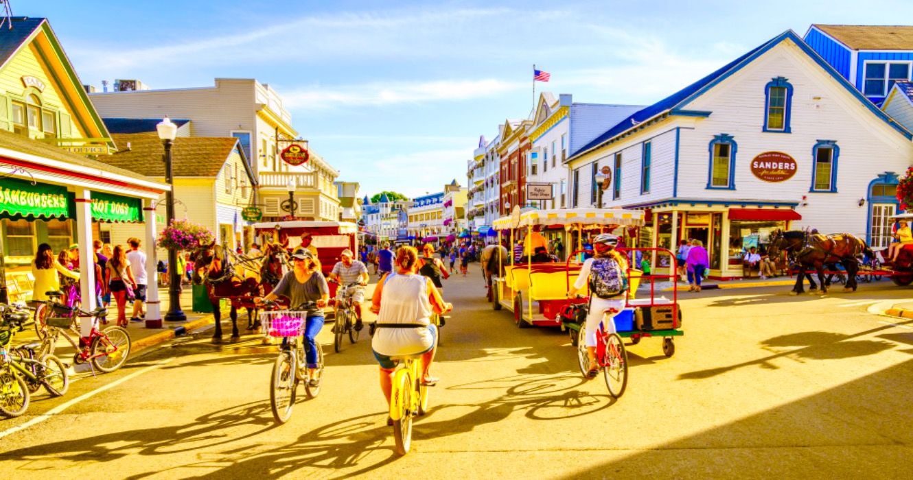 Mackinac Island è una delle capsule del tempo più famose della nazione ed è un mondo in cui le auto sono vietate e i taxi sono cavalli e carrozze. È stata anche votata come la città più bella degli Stati Uniti, secondo diverse classifiche.
