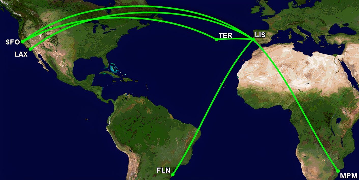 - Lisbona-San Francisco (da giornaliero a quattro volte a settimana)