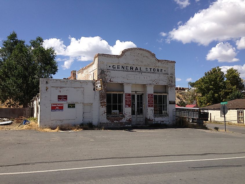 Vista del vecchio magazzino generale nella città di Eureka nel Nevada. Di Famartin – Opera propria, CC BY-SA 4.0, Wikimedia Commons.