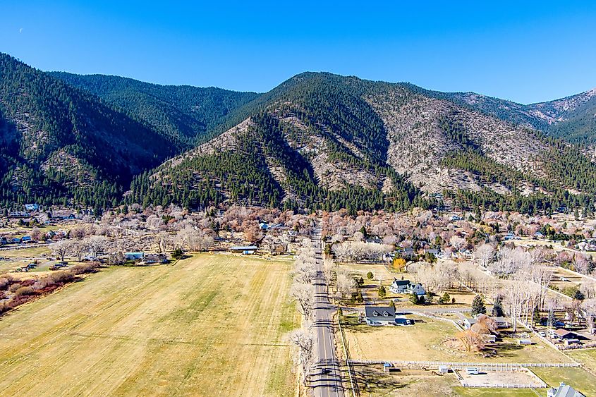 Veduta aerea della piccola cittadina di Eureka, Nevada.