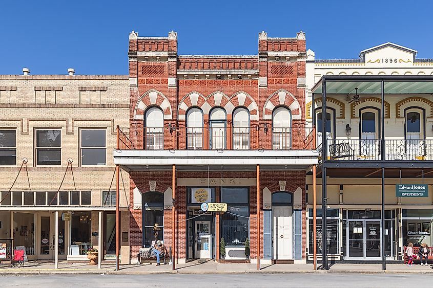 Vetrine dei negozi nella strada principale di Goliad, Texas. Credito editoriale: Emily Marie Wilson / Shutterstock.com.
