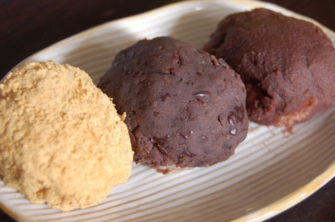 Questi deliziosi wagashi autunnali sono realizzati con riso glutinoso al vapore, spesso chiamato riso mochi, abbinato a pasta di adzuki zuccherata. Il processo prevede di arrotolare il riso in piccole palline giocose e poi ricoprirle con una varietà di deliziosi condimenti, come zucchero, semi di sesamo macinati o farina di soia tostata (kinako). Ogni boccone offre un mix confortante di consistenze e sapori, che li rende un piacere perfetto da gustare mentre le foglie iniziano a cambiare!