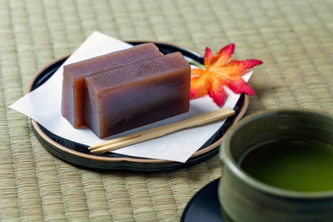 Lo Yokan è un delizioso dessert gelatinoso a base di pasta di fagioli adzuki zuccherata e agar-agar, un agente gelificante ottenuto dalle alghe rosse. La miscela viene sciolta in acqua calda e poi raffreddata in uno stampo fino a quando non diventa una delizia densa e soddisfacente. Puoi trovarne vari gusti, tra cui matcha, fagioli rossi interi e persino castagne. Ogni versione porta un tocco unico, rendendo lo yokan uno snack versatile e piacevole da assaporare in ogni momento della giornata!