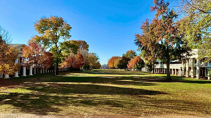 I magnifici monumenti storici di Charlotteville sono meravigliosi da vedere in qualsiasi periodo dell'anno, ma il fogliame autunnale aggiunge un ulteriore livello di magia. Ciò è particolarmente vero nello storico villaggio accademico dell'Università della Virginia, dove è possibile esplorare la visione architettonica di Thomas Jefferson, ora patrimonio mondiale dell'UNESCO. Passeggia attraverso The Lawn verso la magnifica Rotonda, modellata sul Pantheon di Roma, e ti fermerai molte volte per scattare foto dei viali alberati, degli edifici accademici originali e dei vecchi quartieri studenteschi.