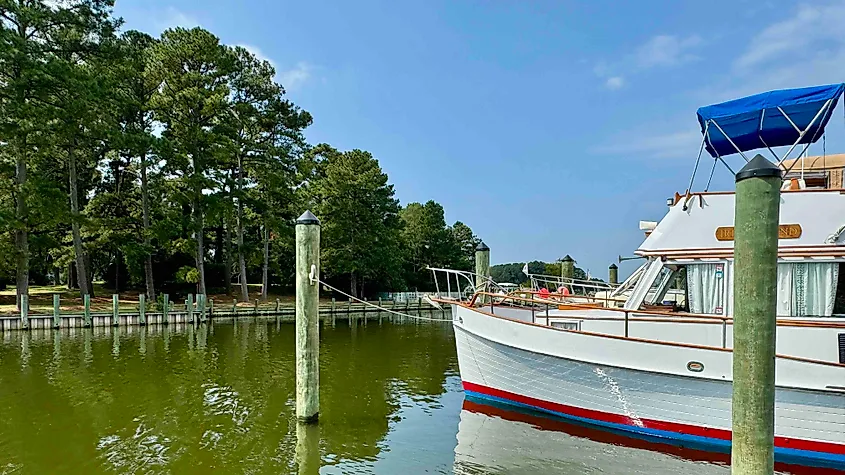 Molo e porto turistico di Onancock sulla baia di Chesapeake. Credito immagine: Bryan Dearsley.
