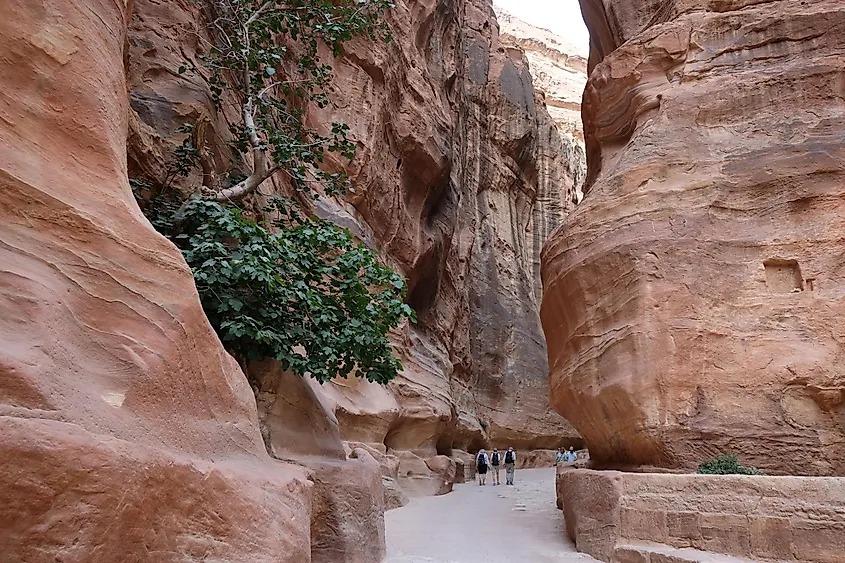 La gente risveglia Al-Siq sul Jordan Trail a Petra, Giordania.