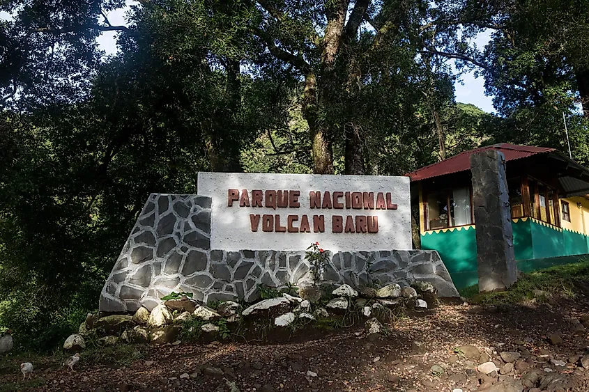 Ingresso al Volcan Baru, la montagna più alta di Panama. L'inizio di un'escursione di sei ore.