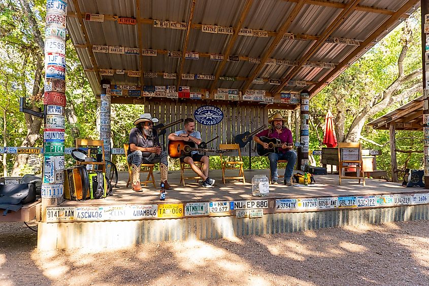 Artisti che suonano musica a Luckenbach, Texas, tramite Marathon Media / Shutterstock.com