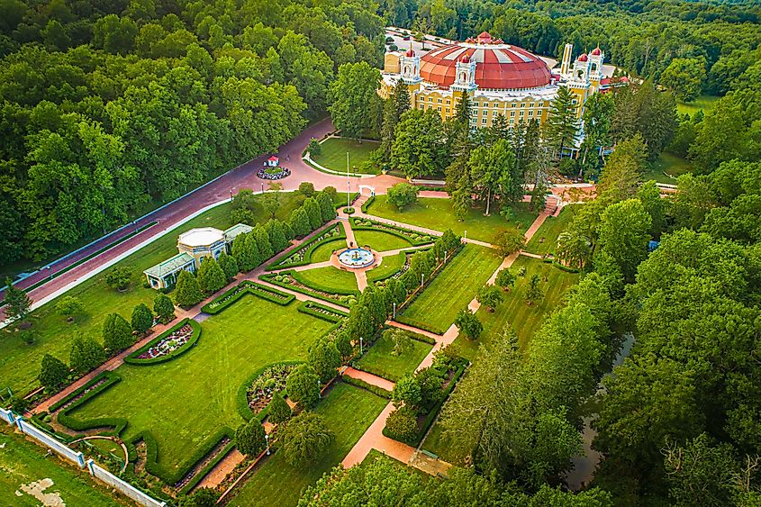 Veduta aerea dello storico West Baden Springs Hotel a French Lick, Indiana.