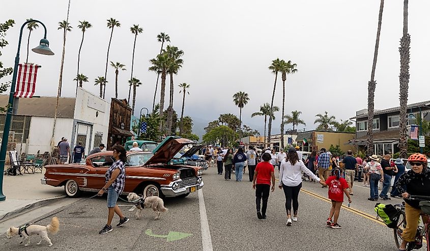 Linden Avenue corre direttamente alla spiaggia e ospita la maggior parte delle attività commerciali della città. Il Lucky Llama Coffee, ricavato in un'ex baracca da surfisti, serve caffè espresso biologico e ciotole di açai su un patio con assi di legno ombreggiato da alberi di pepe. Robitaille's Fine Candies, fondata nel 1950, produce ancora confetti a nastro in loco e li spedisce alla Casa Bianca ogni stagione delle vacanze. Il Museo di Storia della Valle della Carpinteria comprende strumenti da fabbro, attrezzature per l'allevamento e manufatti Chumash in un cortile circondato da alberi di agrumi. Alla fine della strada, Carpinteria State Beach ha pozze di marea, una stazione di salvataggio e una colonia di leoni del porto che si affaccia appena oltre il campeggio. Il Pacific Surfliner di Amtrak ferma a un isolato da Main Street.