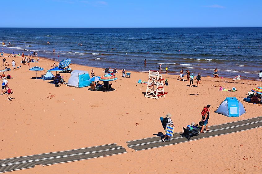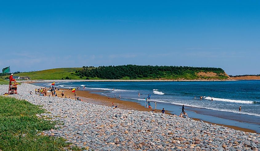 Una spiaggia nella località turistica di Cavendish nella gloriosa estate.