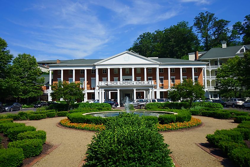 Facciata dell'hotel Omni Bedford Spring Resort a Bedford, Pennsylvania. Credito editoriale: StudioGShock / Shutterstock.com