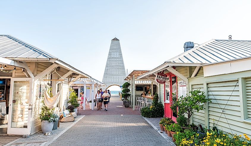 Storica zona commerciale quadrata a Seaside, Florida. Credito immagine Kristi Blokhin tramite Shutterstock
