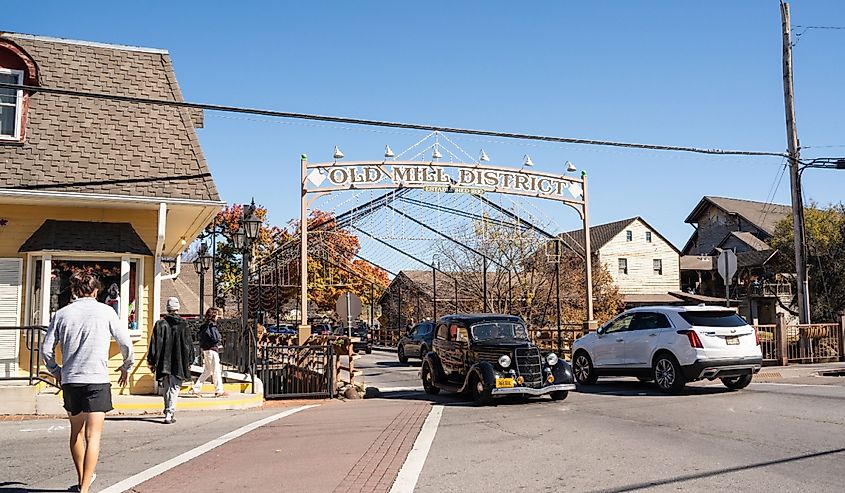 Old Mill District nella zona turistica di Pigeon Forge, Tennessee. Credito immagine littlenySTOCK tramite Shutterstock