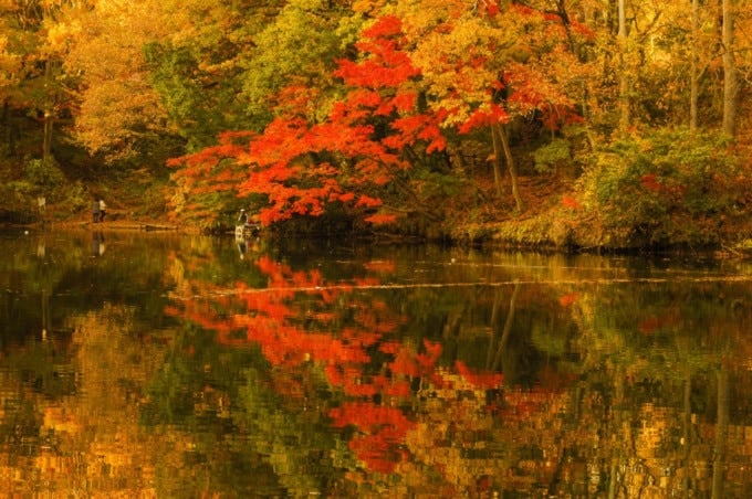 La stagione del fogliame autunnale dura da metà novembre all'inizio di dicembre, quando gli aceri giapponesi assumono colori vivaci. Il riflesso degli alberi dai colori vivaci sulla superficie del lago crea una vista mozzafiato e caleidoscopica. Assicurati di visitare e sperimentare la bellezza di persona.
