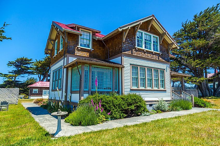 Mendocino, California: dimora storica del guardiano del faro di Point Cabrillo, tramite travelview / Shutterstock.com